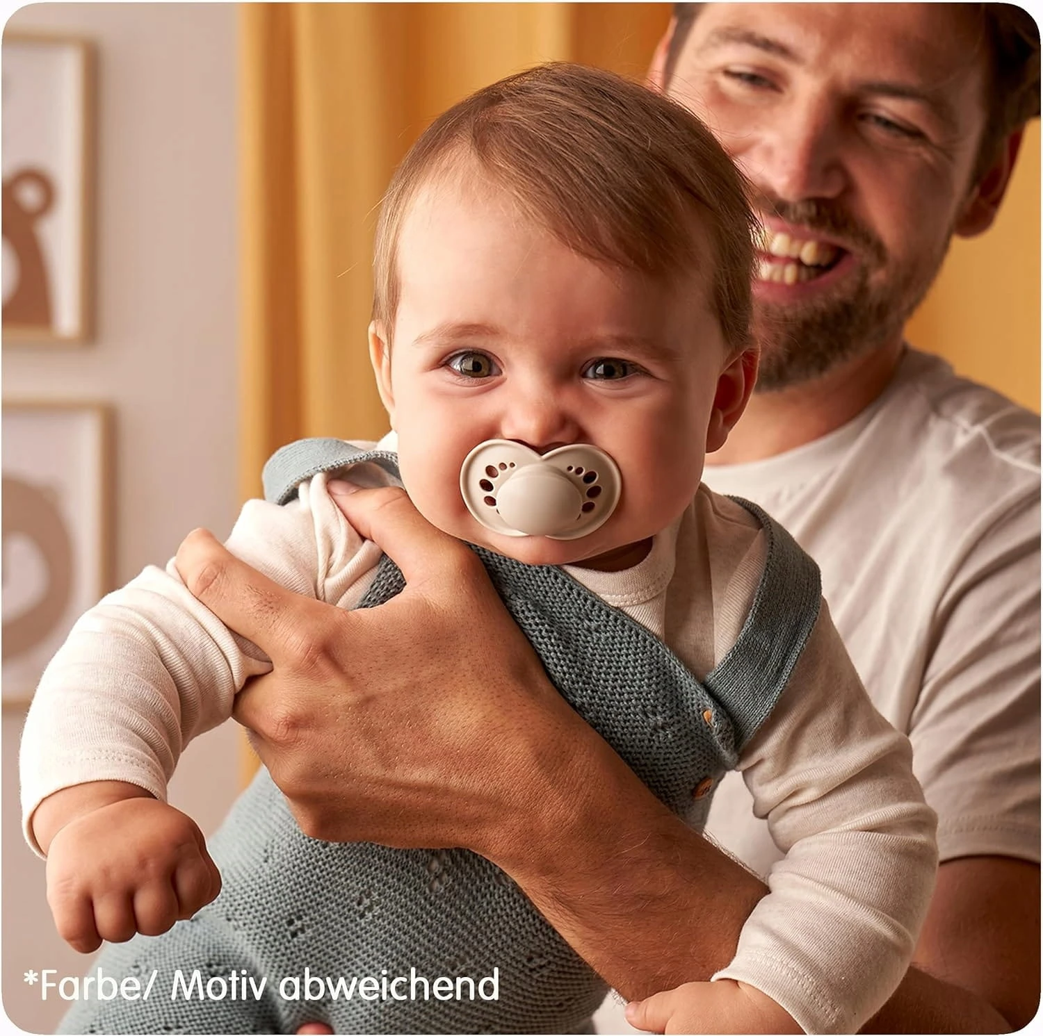 Wspiera zdrowy rozwój jamy ustnej dzięki symetrycznemu i ortodontycznemu kształtowi smoczek jest dopasowany do faz rozwoju żuchwy.