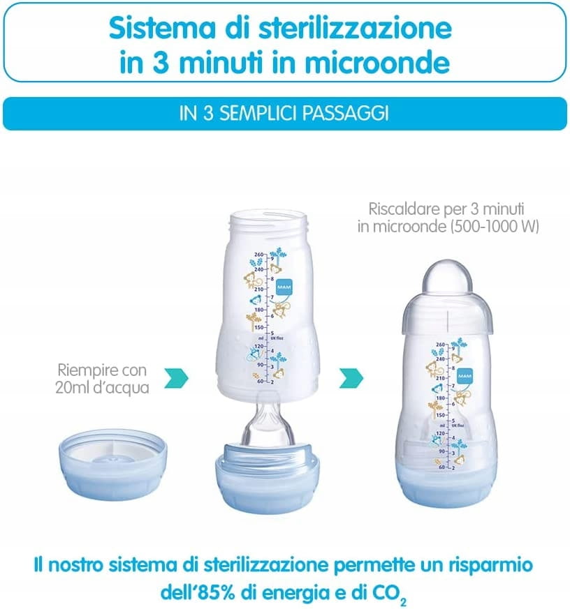- Samosterylizacja w kuchence mikrofalowej w 3 minuty.