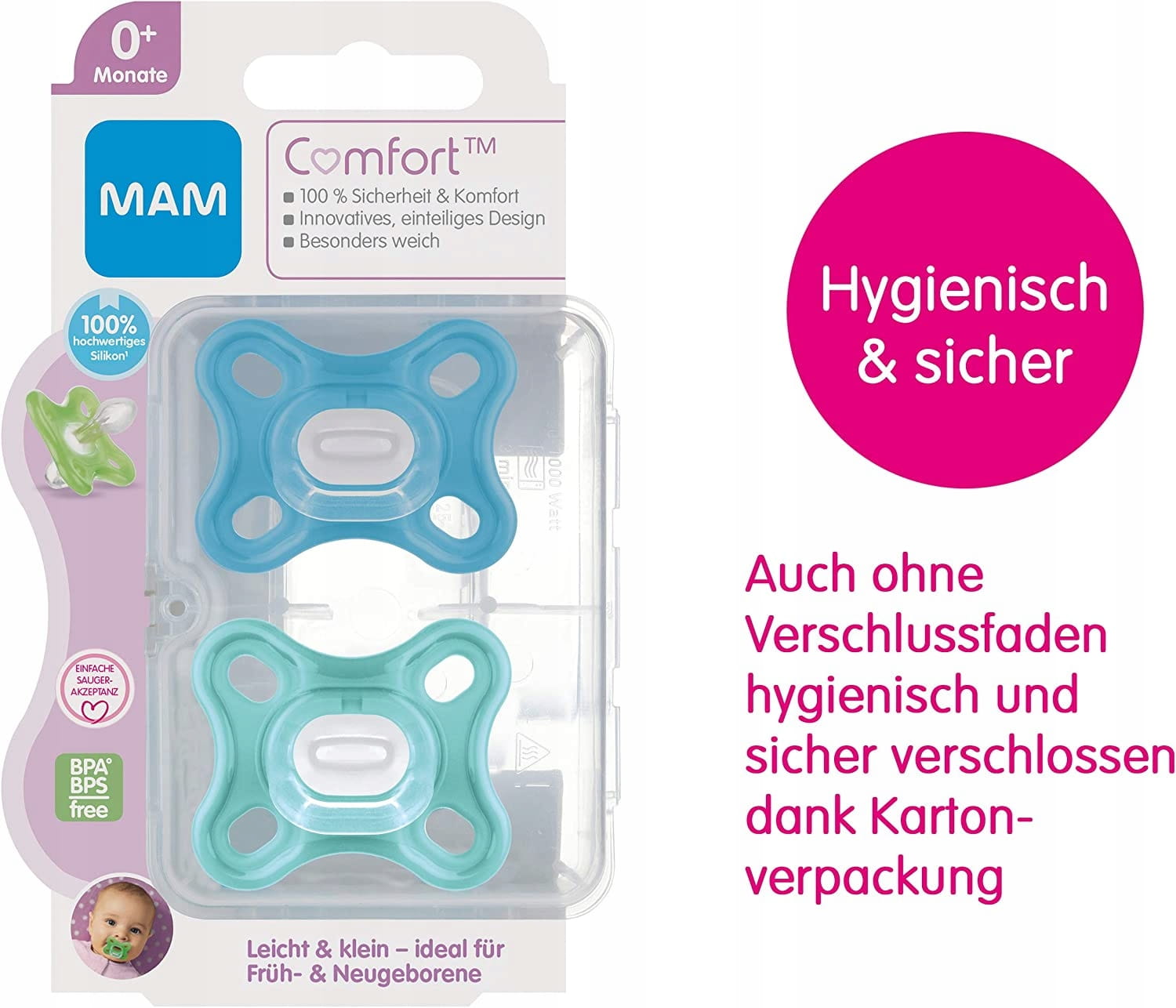 MAM COMFORT smoczek wcześniak noworodek x2 0msc+