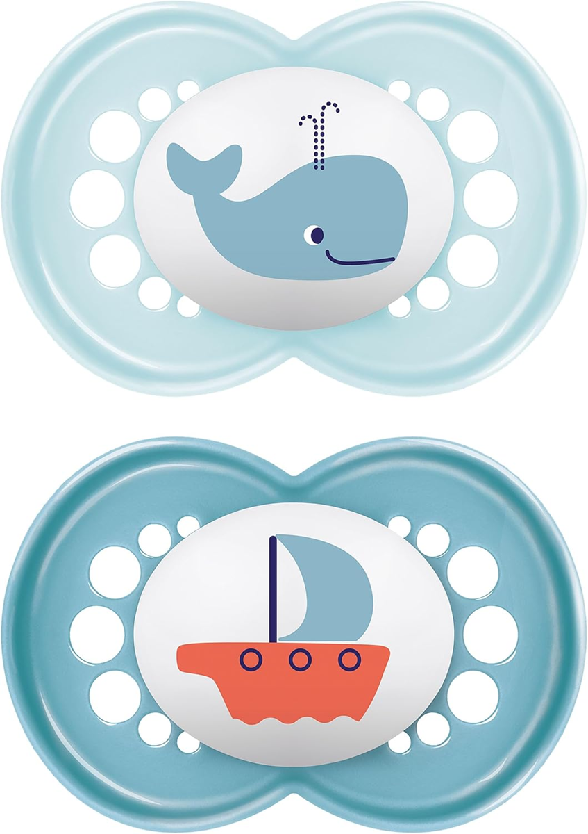 Wspiera zdrowy rozwój jamy ustnej dzięki symetrycznemu i ortodontycznemu kształtowi smoczek jest dopasowany do faz rozwoju żuchwy.