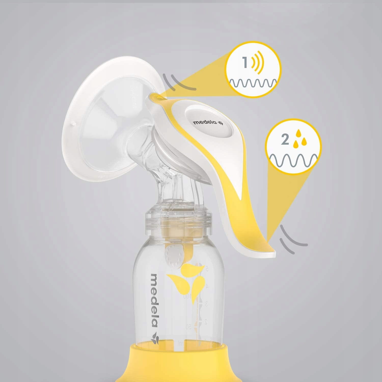 Aby w pełni wykorzystać funkcjonalność uchwytu, najpierw należy naciskać krótszą część uchwytu, co pozwoli wytworzyć większe podciśnienie, podobnie jak robi to głodne dziecko. Kiedy mleko zacznie płynąć, zacznij naciskać dłuższą część uchwytu – ruchy ssące będą wolniejsze, co pozwoli odciągnąć większość mleka z piersi.